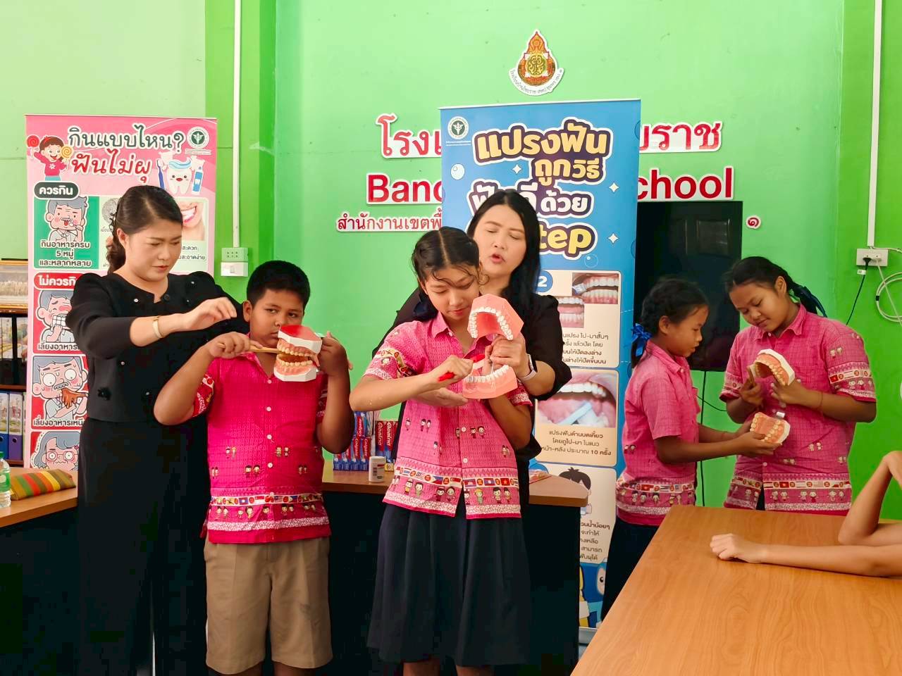 เจ้าหน้าที่จากโรงพยาบาลส่งเสริมสุขภาพตำบลบ้านพละ ที่เข้ามาติดตามตรวจสุขภาพฟันและเคลือบฟลูออไรด์ ให้แก่นักเรียนระดับชั้นอนุบาลปีที่ 2 - ระดับชั้นประถมศึกษาปีที่ 6 10 มี.ค. 69