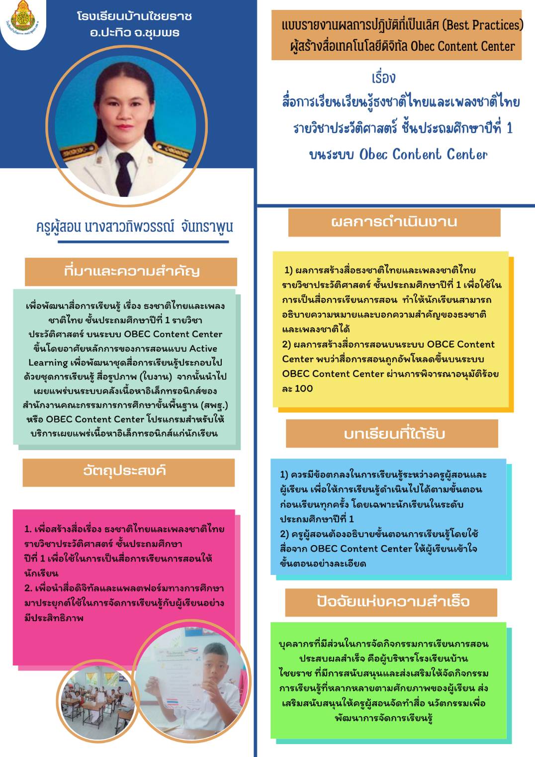 รายงานผลการปฏิบัติที่เป็นเลิศ (ฺBest Practices) ผู้สร้างสื่อเทคโนโลยีดิจิตัล Obec Content Center